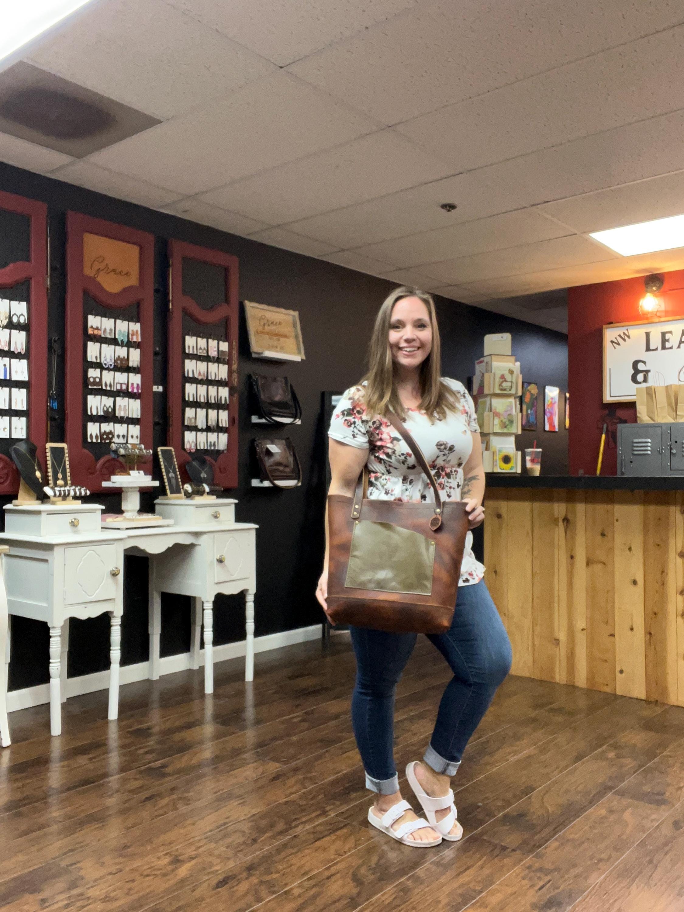 We’re a husband-and-wife team who started NW Leather & Grace in 2020, not knowing how far this journey would take us. What began in our home has grown into two beautiful storefronts — one in Longview and one along the coast in Ilwaco — plus countless vendor markets in cities all across the Pacific Northwest. We’ve met incredible people, shared stories, and shipped our work to homes all over the country. Every piece is handcrafted with purpose — a mix of classic and modern design, inspired by our faith, our roots, and the grace that continues to shape our path.