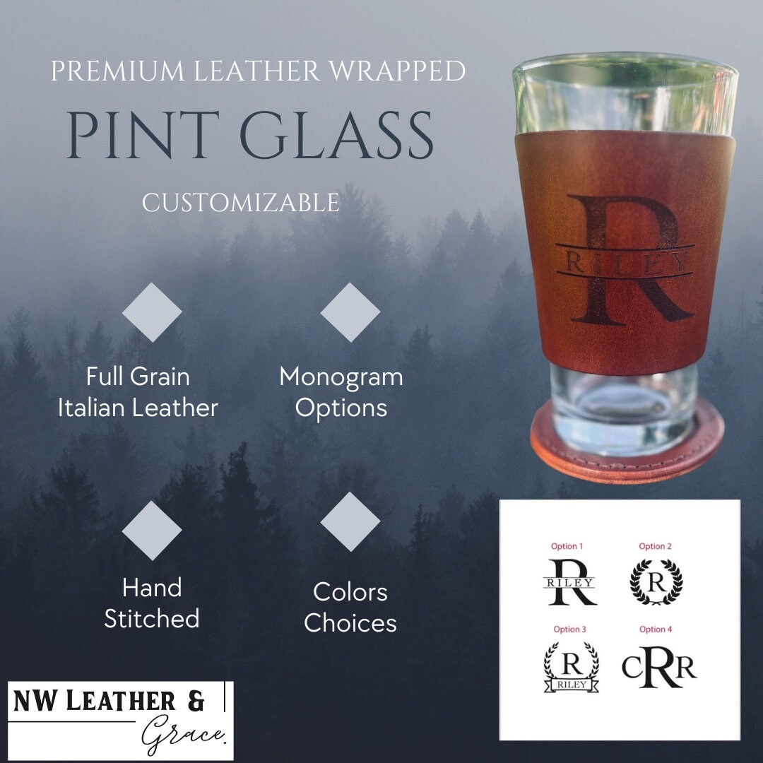There are 4 monogram options for the pint glass sleeve (please see photo for images).